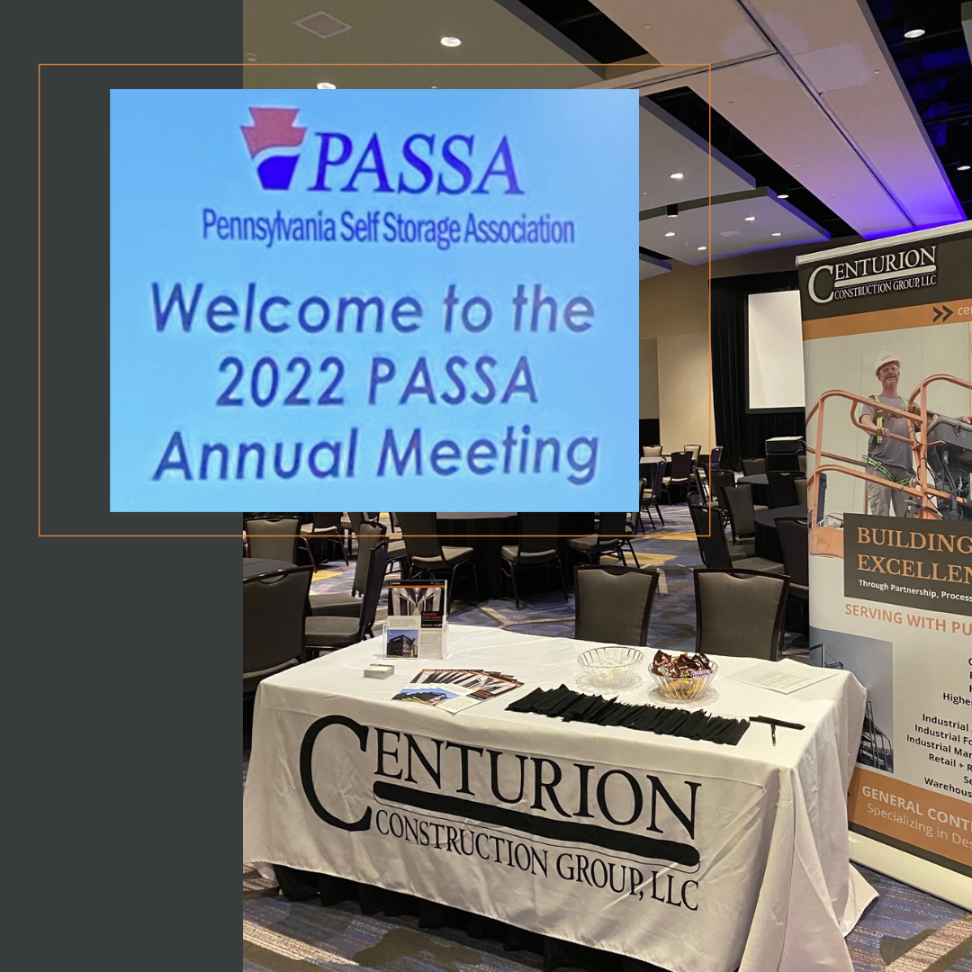 Centurion Construction was proud to join over the 185 people who turned out for the PASSA event held at the Lancaster Marriot 9/27/22-9/28/22. A highlight for our business development leader Aaron Leighow was the Tuesday evening networking event where he had the opportunity to share on a more personal level the extent of our capabilities beyond self storage facilities such as multi family, strip centers, and small warehouses.