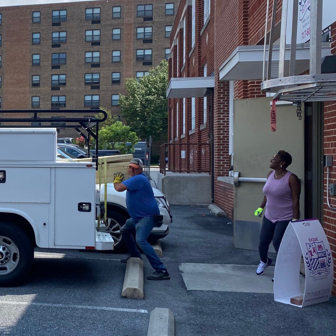 On Friday July 28th Greg Diller (Superintendent) and Aaron Leighow (Business Development) delivered material to Evolve Youth Trades Academy in Harrisburg for their upcoming fall semester. Greg and Aaron both braved the 95+ degrees temperatures to make sure the school had the material for their students to build greenhouses and other structures.