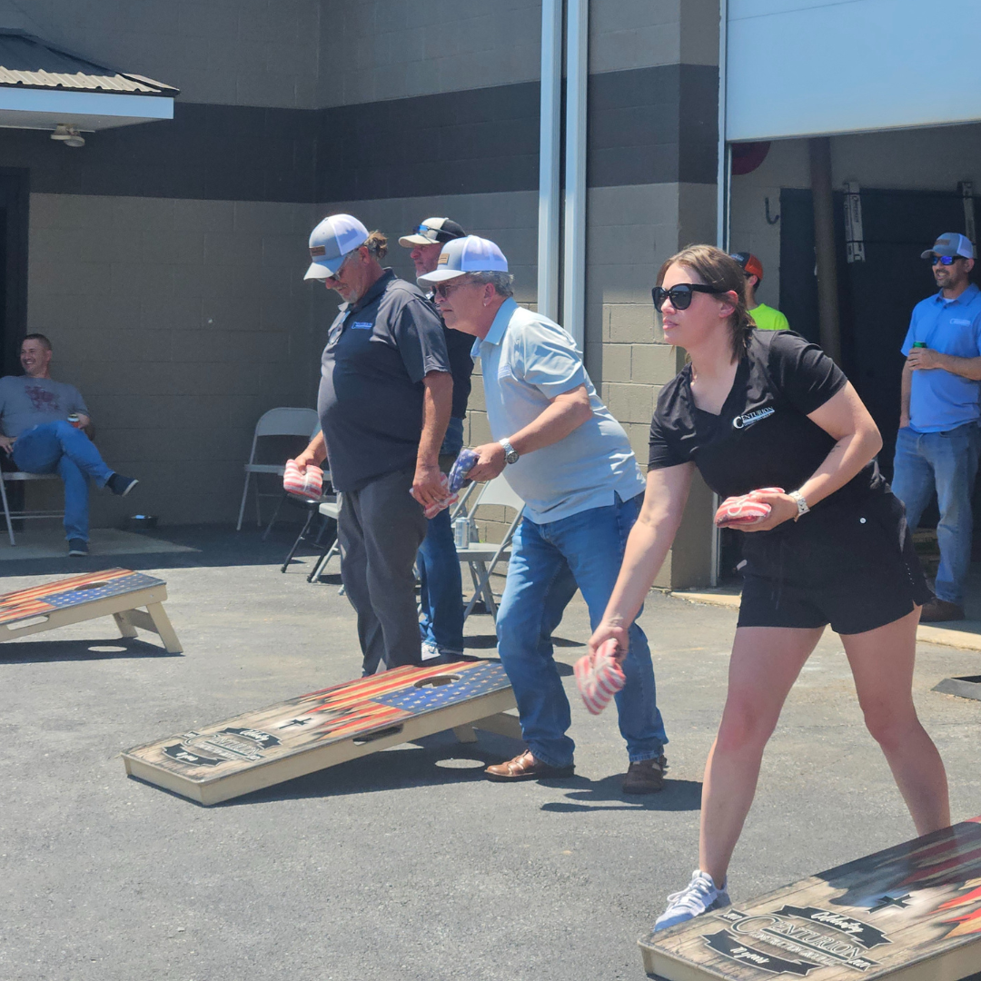 🌞 SUMMERTIME TEAM BUILDING | Centurion is always on board for a Cornhole Tournament! Staff enjoyed grilling & chilling in the lot while Wes Loe and Matt Freyermuth climbed the ranks to snag the title “Boss of the Toss”!!